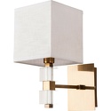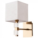 Бра стиля модерн для гостиной, кабинета или спальни имеет размеры 250x300x300 мм. Арматура светильника окрашена в медный цвет. Лампы в комплекте - отсутствуют. В светильнике применяются лампы накаливания или светодиодная LED-лампа. Цвет плафонов - белый, с матовой поверхностью. Материал плафонов - текстиль. Класс электробезопасности - I, степень пылевлагозащиты (IP) - 20. Максимальная мощность лампы (Вт) - 60. Светильник размещается на стене.