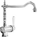 Назначение: кухонный • Конструкция: однорычажный • Монтаж: горизонтальный • Клапан: керамический • Материал: покрытие - хром • Монтажные отверстия: 1 отверстие диаметром 35 мм • Форма излива: традиционная • Душевая лейка в комплекте: нет • Донный клапан в комплекте: есть