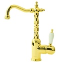 Производитель: Boheme Модель: Tradizionale Oro 282 - назначение: для умывальника - конструкция: однорычажный - монтаж: горизонтальный - материал: покрытие - золото - монтажные отверстия: 1 отверстие Описание