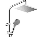 Устройство: душевая система • Смеситель: термостатический • Ручной душ (душевая лейка): размер 108 мм, настройки 2 шт • Верхний душ (тропический): размер 230 мм, настройки 1 шт • Комплектация: ручной душ, верхний душ, смеситель, стойка, шланг, крепление ручного душа