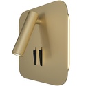 Бра стиля техно для гостиной, кабинета или спальни имеет размеры 130x130x65 мм. Арматура светильника окрашена в золотой цвет. Лампы в комплекте - светодиодные [LED]. В светильнике применяются светодиодная LED-лампа. Цвет плафонов - золото, с глянцевой поверхностью. Материал плафонов - дюралюминий. Класс электробезопасности - I, степень пылевлагозащиты (IP) - 20. Максимальная мощность лампы (Вт) - 9. Светильник размещается на стене.