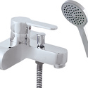 Назначение: ванна+душ • Конструкция: однорычажный • Монтаж: вертикальный • Клапан: керамический • Материал: латунь, покрытие - хром • Подводка: жесткая • Монтажные отверстия: 2 отверстия • Форма излива: традиционная • Душевая лейка в комплекте: есть • Держатель для душевой лейки: настенный держатель • Аэратор: есть • Эксцентрики в комплекте: есть • Донный клапан в комплекте: есть