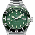 Стильные швейцарские часы с надежным массивным корпусом и потрясающей водозащитой, позволяющей совершать глубоководные погружения. Лимитированная серия из 999 экземпляров. Мужские механические часы с автоподзаводом. Надежный швейцарский механизм Ronda R-150. Центральные часовая, минутная и секундная стрелки. Апертура даты в позиции 3 часов. Зеленый циферблат. Керамический безель. Круглый корпус выполнен из матовой нержавеющей стали. Диаметр корпуса составляет 44 мм, толщина 14 мм.