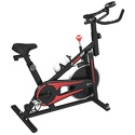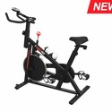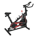 Спин-байк оснащён ременным типом привода. Колодочная система нагружения позволяет выбрать оптимальный уровень нагрузки. Регулировка нагрузки осуществляется с помощью рукоятки на корпусе тренажера. Дисплей отображает следующие показатели: время, дистанция, пульс, калории, скорость. Вес маховика составляет 8 кг. Мягкое сидение анатомической формы регулируется в вертикальной и горизонтальной плоскости.
