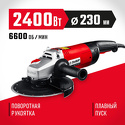 диаметр диска: 230 мм • 2400 Вт • 6600 об/мин холостого хода • питание: сеть • 5.5 кг
